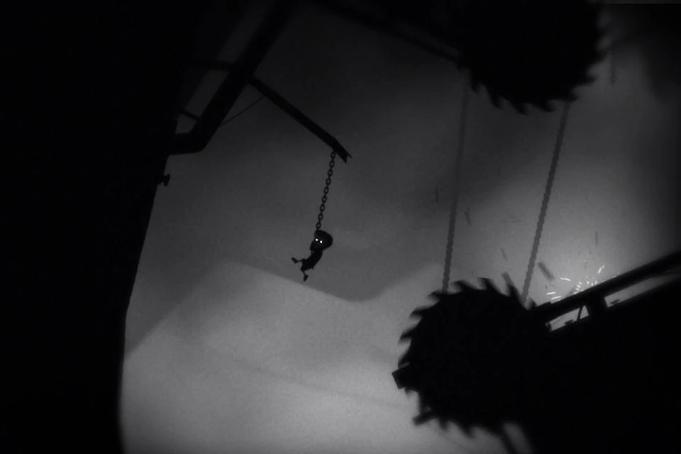 Limbo, the game, is special in that while it does not wholly depict that mysterious dimension as my mind did, it captures its essence. You are a boy who wakes up in a lonely world made up only of black, white, and shades of gray. Video game logic demands you walk from left to right, jumping over obstacles as they appear, a simple task that needs little attention in the initial moments. This is your chance to absorb your surroundings. The background provides an illusion of depth, but its branches and bridges are out of focus, as if you are dreaming them into existence. The pint-sized hero, his bright blinking eyes shining from his blackened silhouette, trots ahead with the charming gangliness of a six-year-old.